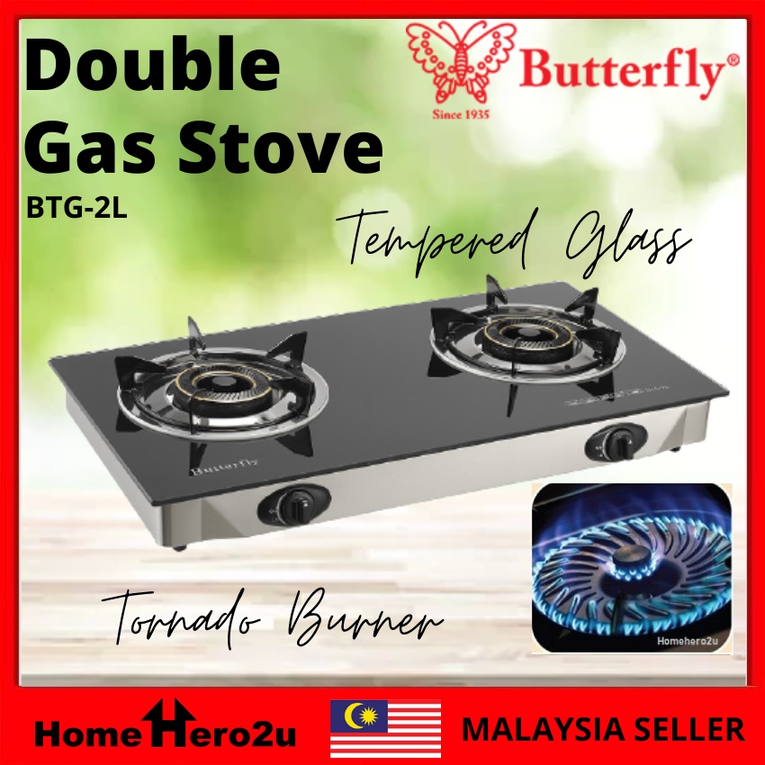 Butterfly Btg 2l Glass Cooker 2 Burner Gas Stove Table Top Tempered Glass With Sirim Homehero2u Shopee Malaysia
